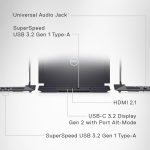 - Ports: 1 headset (headphone and microphone combo) port, 1 RJ45 Ethernet port, 3 USB 3.2 Gen 1 ports, 1 HDMI 2.1 port, 1 Thunderbolt™ 4 port with DisplayPort™